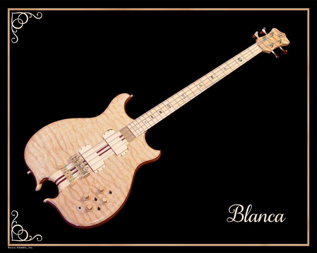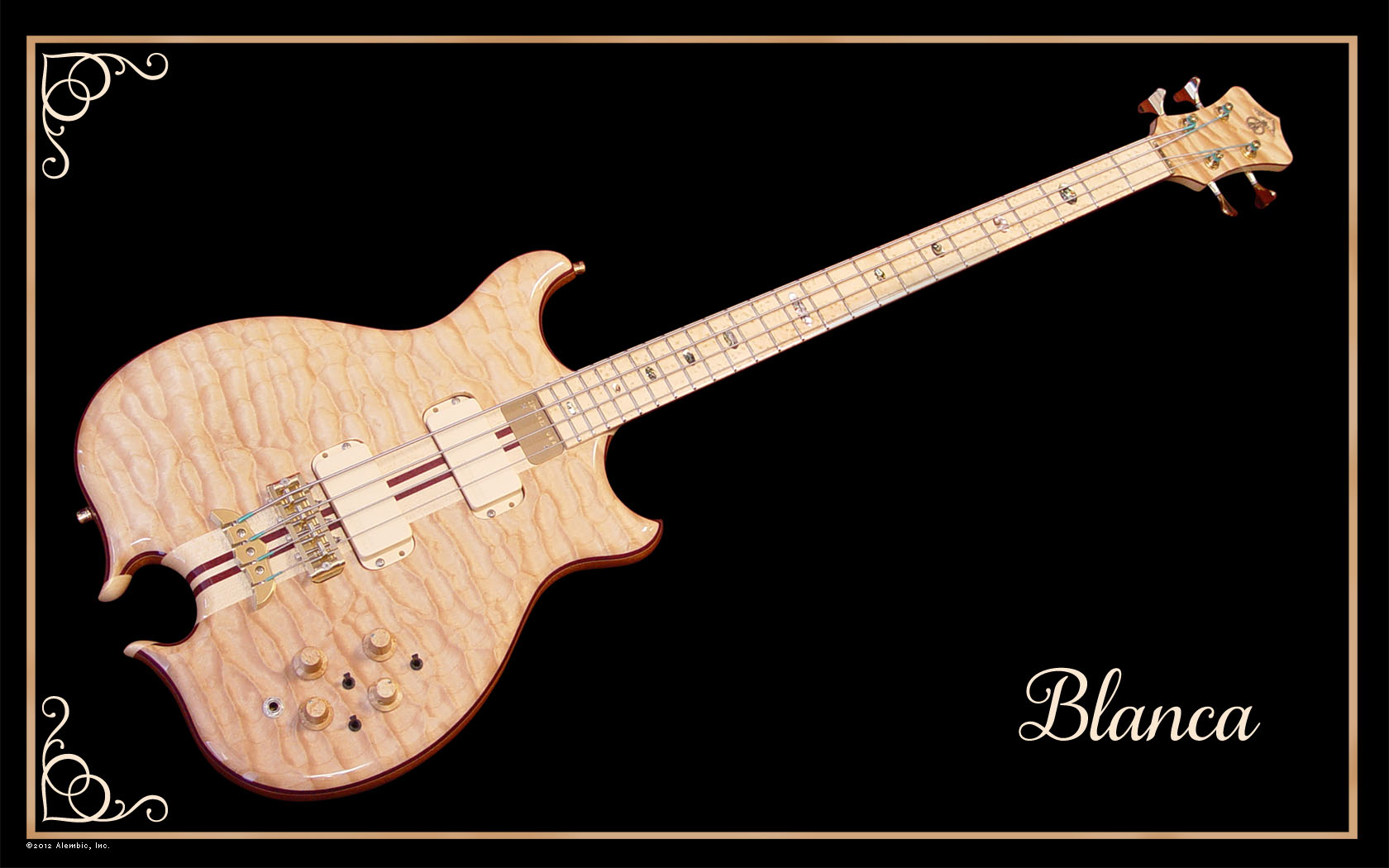 Fast forward a few years, and that ol’ Maple fingerboard popped up again, this time in the form of John Lodge’s Series I bass in Satinwood with a (you guessed it) Maple fingerboard. Another few years of fast forward and Gary saw the Featured Custom Pure Brilliance and that cemented the idea: it was time to place his custom order. After gleaning over the other Featured Customs and the Factory to Custom section of the Alembic Club, all the pieces fell in place and Blanca was ready to take form.