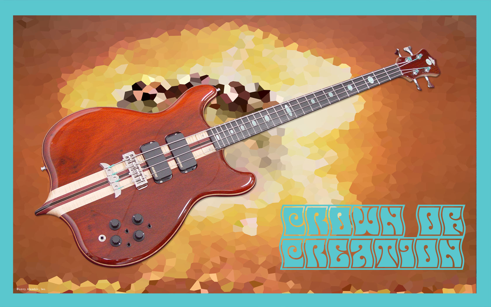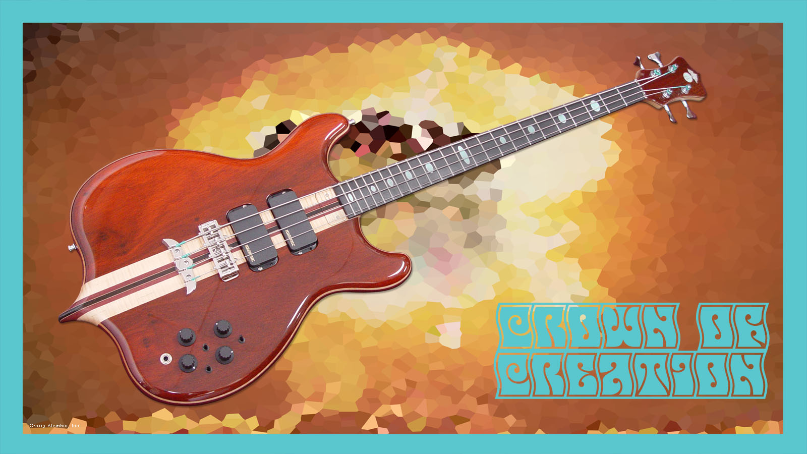 Although these instruments are phenomenal and I love them both, I felt that neither one was “just exactly perfect“ for me, so I began to develop a concept for a custom build. I knew I wanted to pay homage to Alembic's formative years along with the instrument (and musician) that initiated my dream, but, beyond that, how would this idea become a finished instrument that also reflects my personality and playing style? To help transform this bunch of random ideas into reality, I scoured the Alembic website, especially the Custom Archive, looking for guidance. The Crown of Creation project was born after a single sleepless night when I was finally able to organize all of my thoughts about woods, colors, finishes, body, and headstock shapes and electronics well enough to contact Alembic.
