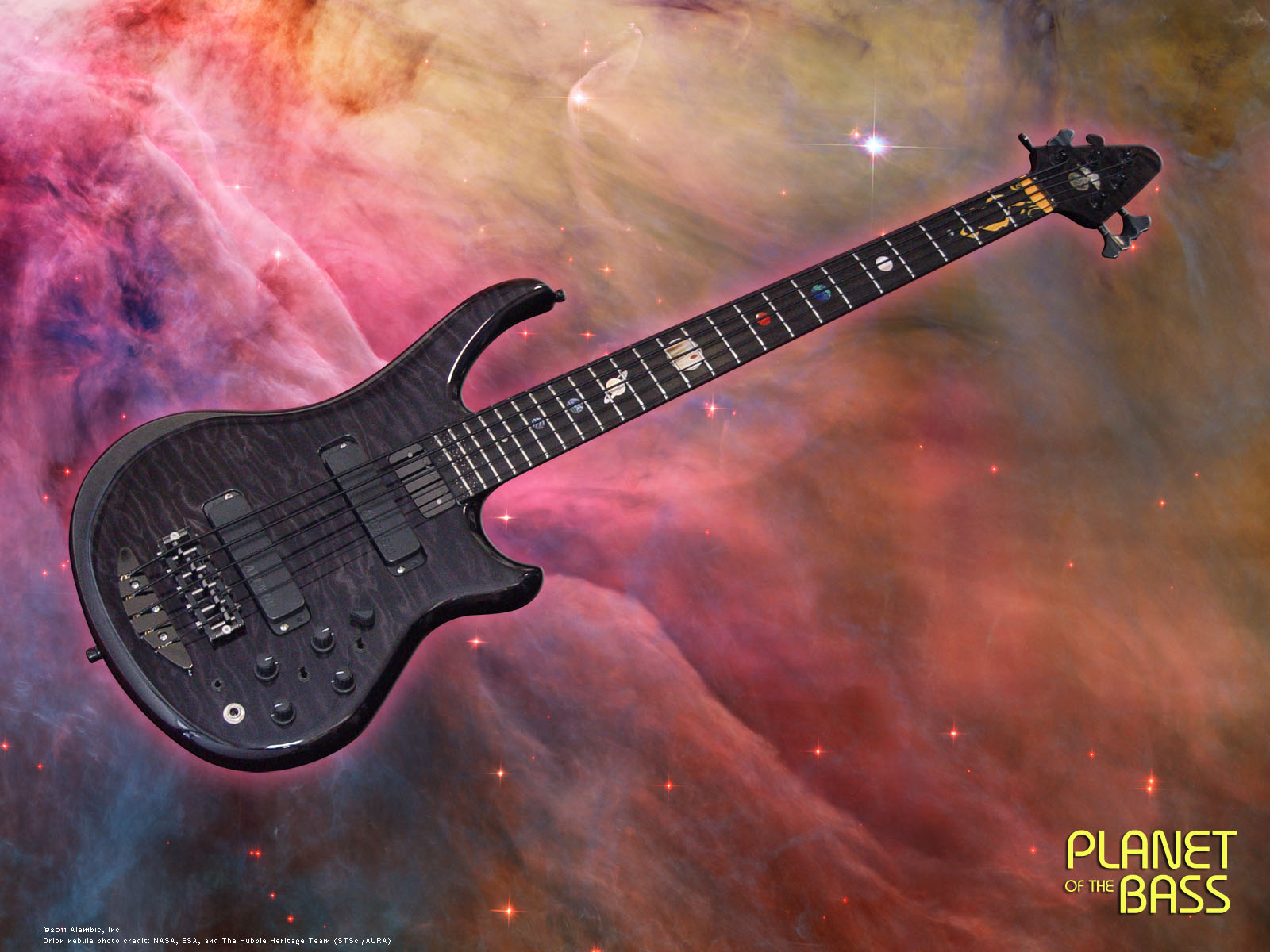 Eric’s wonder of the solar system was the inspiration for his second Alembic bass. He already had a Mark King Signature Deluxe bass with LEDs. But, as with the rest of us, getting a little older meant that this rather heavy bass (at just over 13 pounds) was taking a toll on his back come the end of the gig. He needed his next instrument to have all the Alembic sound he loved, but easier on his back.