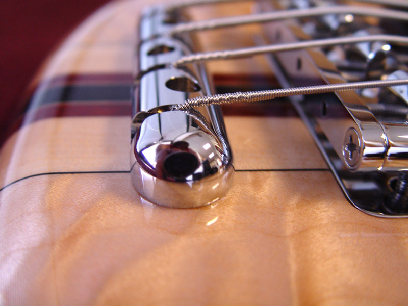 We took the simple direction "make the tailpiece as rounded as possible" to create this smoothly sculptured form. The same tailpiece is also on the Quilted Maple bass.