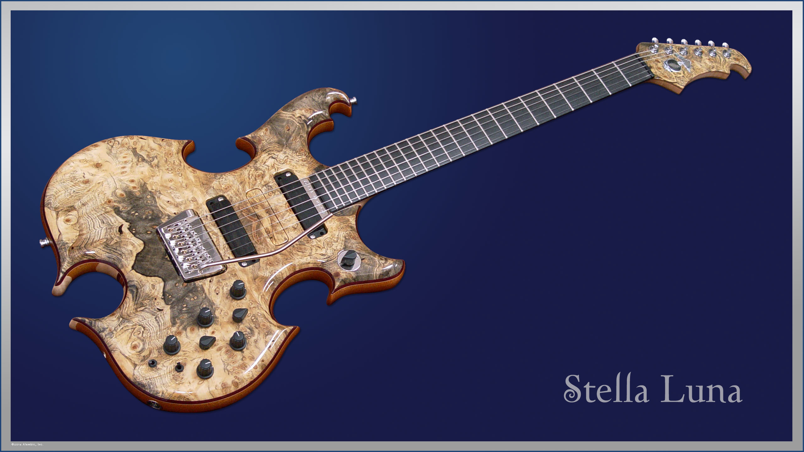 Stella Luna started with John perusing the wood bank online and finding this beautiful Buckeye Burl slab large enough to bookmatch to center (where we cover the neck with the top laminate). John was very fond of the Triple Omega body shape we made for John Paul Jones of Led Zeppelin. The version John selected is scaled properly for guitar and includes a pistol grip detail on the upper horn.